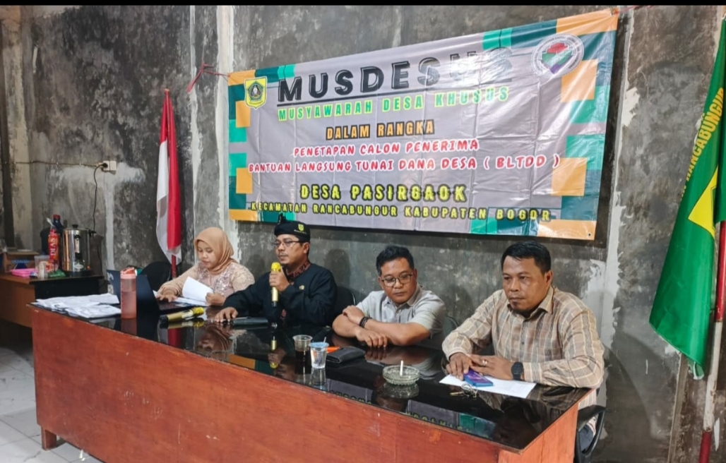 Kepala Desa Pasirgaok Abud sapaan akrab Abdul Rochman, Dalam keterangannya mengatakan bahwa hari ini pihaknya melaksanakan musyawarah desa khusus membahas verifikasi, validasi, finalisasi dan penetapan calon penerima Bantuan Langsung Tunai (BLT) tahun 2026.