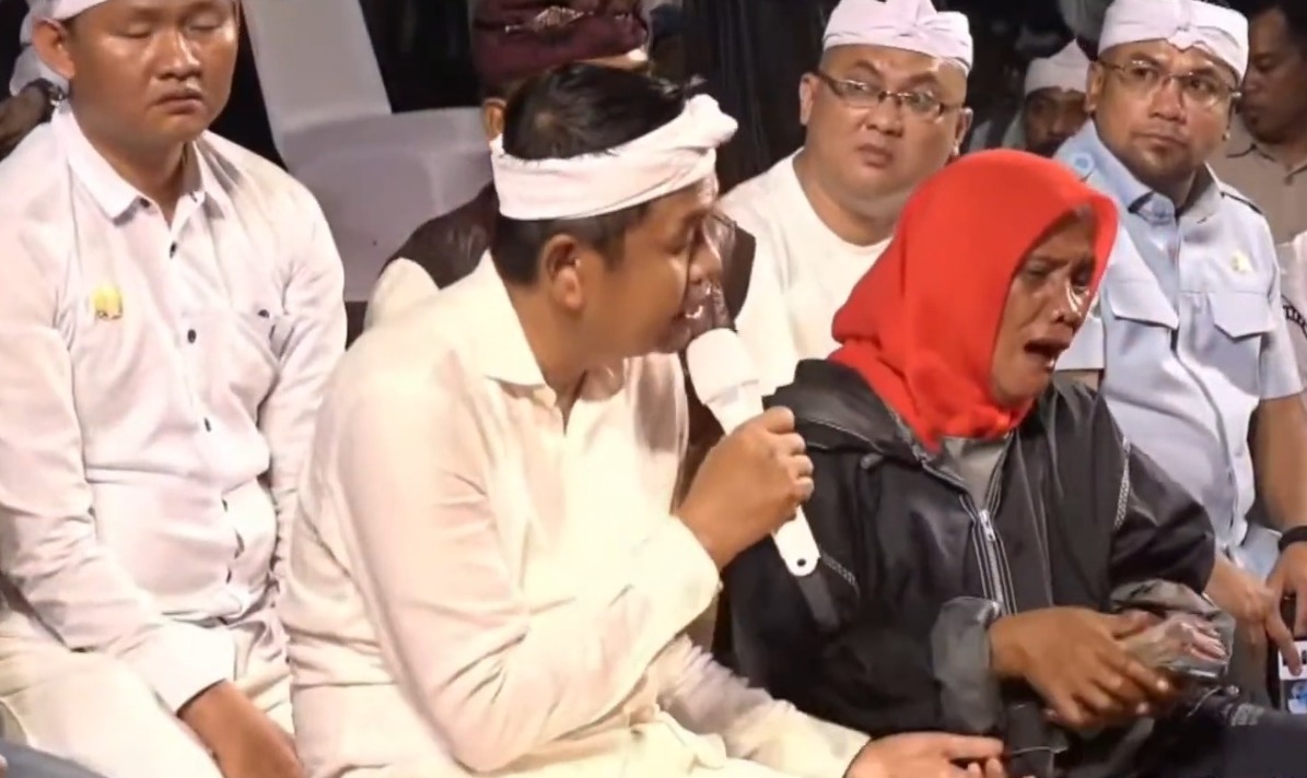 Momen haru sekaligus tak terduga terjadi di penghujung acara, saat seorang lansia asal Parungseah, Kabupaten Sukabumi, yang hadir di tengah kerumunan warga, secara khusus dipanggil KDM untuk naik ke panggung.