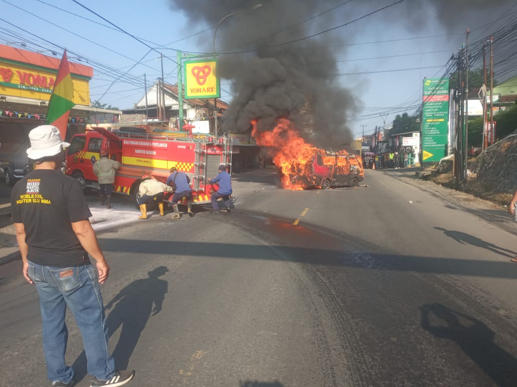 Angkot Goalpara Sukabumi Terbakar di Jalan Sukaraja. Isi nya jeriken BBM