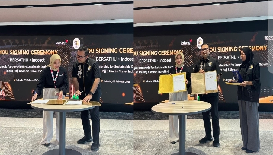 megaswaranews.com – Jakarta – Upaya memperkuat transformasi digital yang bertanggung jawab dan berkelanjutan di bidang industri Travel Haji & Umroh, Asosiasi BERSATHU dan Indosat secara resmi menandatangani Memorandum of Understanding (MoU) kerja sama strategis. Kamis, (05/02/2026).