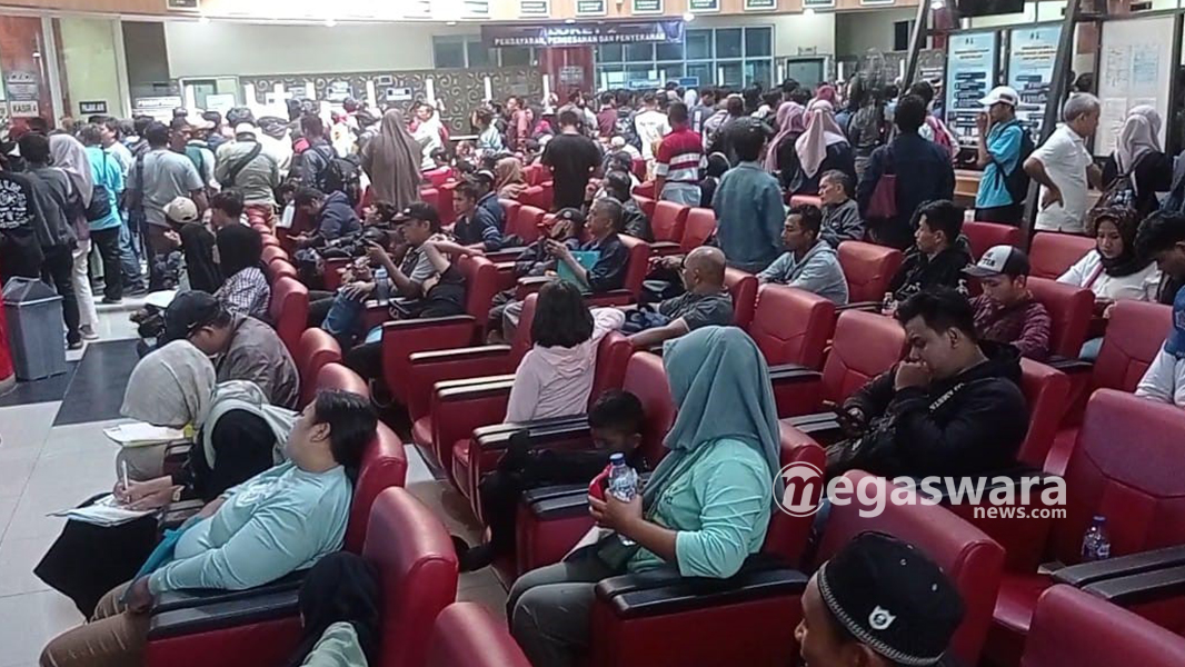 megaswaranews.com, Sukaraja – Hari Pertama Masuk Kerja, Pasca libur lebaran Pemohon Pajak Kendaraan Di Kantor Samsat Kabupaten Bogor Membludak Hingga Menyebabkan Kemacetan Panjang Di Ruas Jalan Jakarta – Bogor, Desa Cimandala, Kecamatan Sukaraja, Kabupaten Bogor, Selasa (08/04/2025)