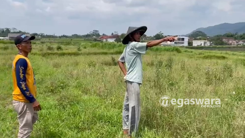 megaswaranews.com, Sukabumi – Lokasi irigasi di Bendungan Leuwi Bangga mengalami jebol. Akibatnya, ratusan hektar sawah dan rumah warga mengalami kekeringan di Kampung Kamandoran RW 10 Desa Karangtengah, Kecamatan Cibadak, Kabupaten Sukabumi, Selasa (8/4/2025).