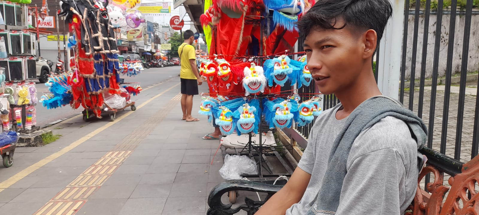 Ia pun menuturkan .Jika moment cap go meh seperti ini ia membawa pernik khas perayaan Berupa Miniatur Barongsay Naga Mainan dan sejumlah aksories lainya.