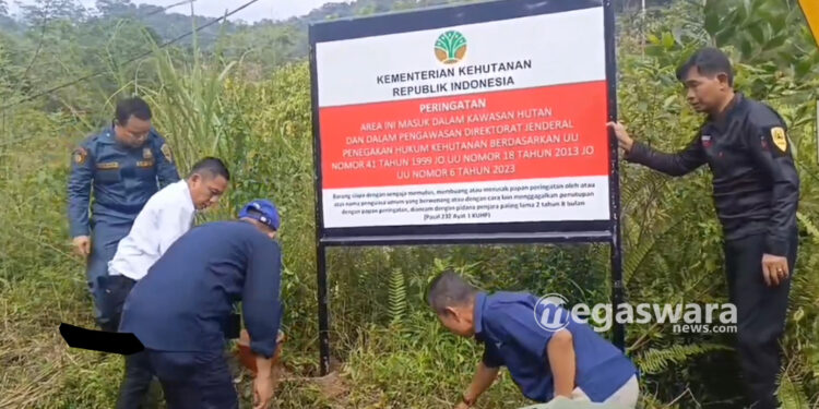 megaswaranews.com, Leuwiliang – Tim Satgas Penyelamatan Kawasan Hutan Lindung Melakukan Pengawasan Aktifitas di DAS Cisadane khususnya terkait pembangunan jalan yang digunakan untuk kepentingan usaha di wilayah PT Antam Pongkor. Selain itu, tim juga memasang plang pengawasan di kawasan tersebut.