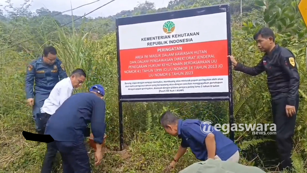 Proses pemasangan plang pengawasan tersebut disaksikan langsung oleh perwakilan PT Antam Pongkor, sebagai bagian dari upaya bersama untuk memastikan keberlanjutan fungsi kawasan hutan dan kelestarian lingkungan.