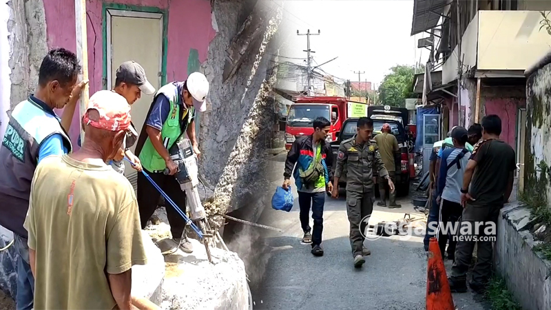 megaswaranews.com Ciampea – Tiga kios yang berdiri digaris sepadan Sungai Cibodas, ditertibkan Satpol PP dan Dinas Pekerjaan Umum dan Penataan Ruang Kabupaten Bogor (05/05/2025) Selasa siang. Bangunan diduga mempersempit aliran sungai Yang kerap mengakibatkan Banjir Bandang dikala hujan deras, bahkan sejumlah kawasan pemukiman padat dan sarana Pendidikan menjadi langganan Banjir.
