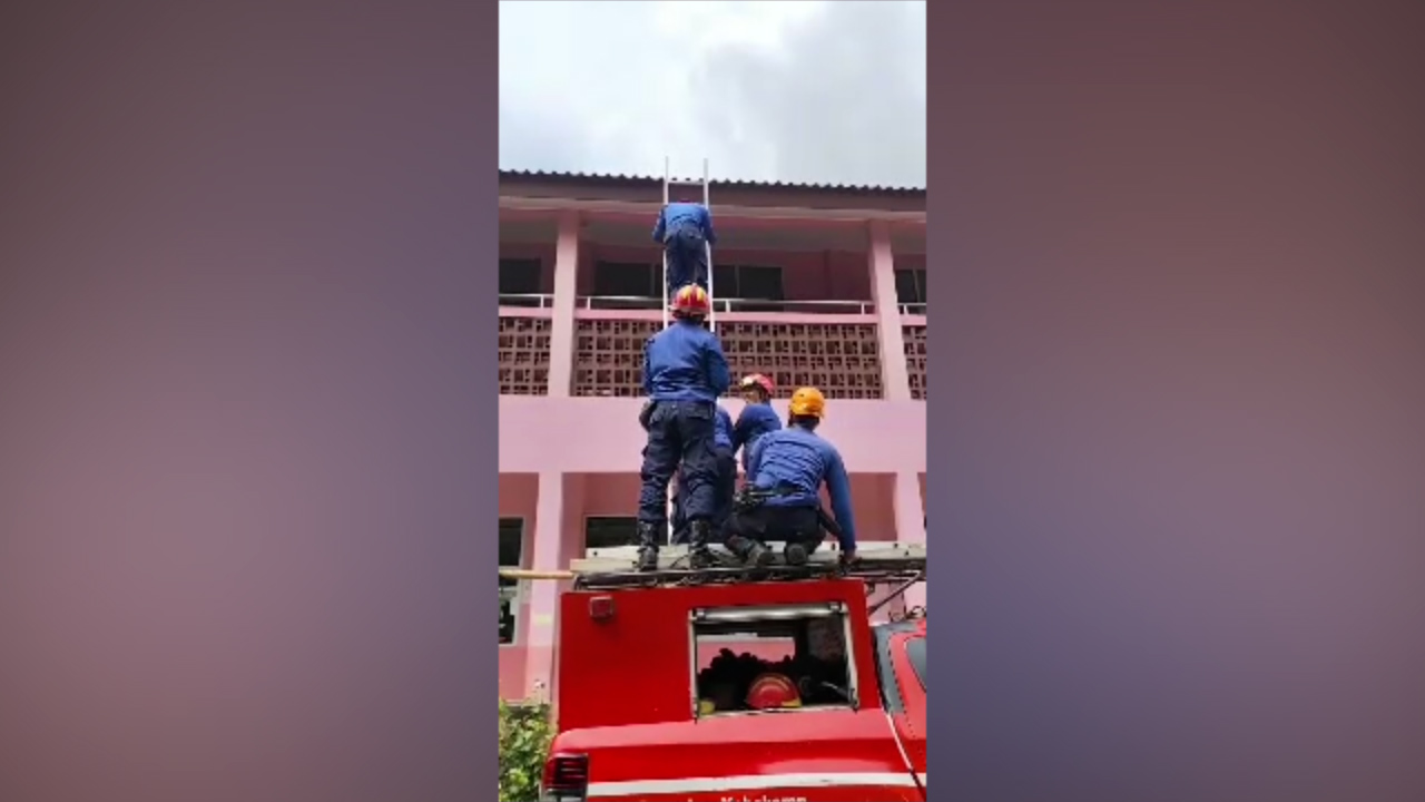 Peristiwa itu bermula saat seorang warga meminta bantuan untuk melemparkan kunci motornya dari bawah ke lantai dua gedung sekolah. Namun lemparan yang terlalu tinggi justru membuat kunci nyangkut di atap bangunan.