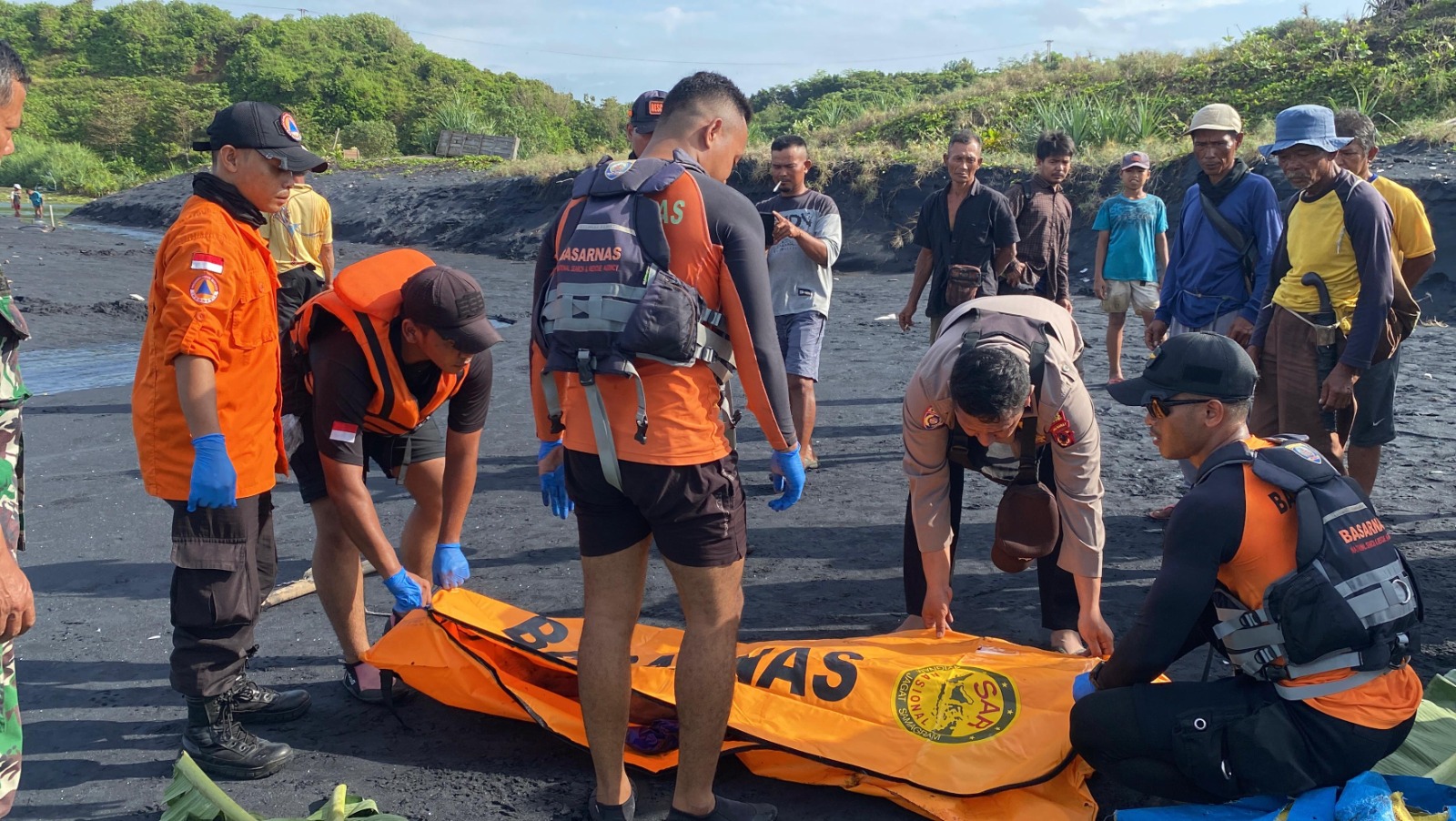 “Tim pertama melakukan upaya pencarian dengan menggunakan perahu nelayan, tim kedua melakukan upaya pencarian dengan menyisir di pesisir pantai secara visual, dan tim ketiga menggunakan drone untuk mencari secara visual melalui jalur udara, “Pungkasnya