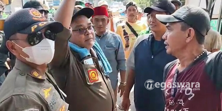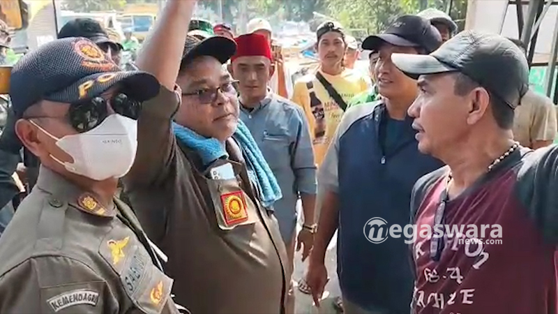 megaswaranews.com, CIBINONG – Ketegangan mewarnai proses pembongkaran puluhan lapak pedagang kaki lima (PKL) dan posko organisasi masyarakat (Ormas) yang berfungsi juga sebagai pangkalan ojek di sepanjang Jalan Raya Bogor-Jakarta, wilayah perbatasan Kabupaten Bogor dan Kota Depok.