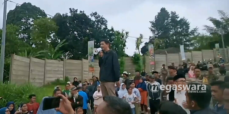megaswaranews.com – Cisarua, Bogor – Puluhan warga Desa Leuwimalang melakukan aksi unjuk rasa di depan lokasi wisata Echanting Fantasy Kecamatan Cisarua, Kabupaten Bogor. Mereka menuntut agar pihak pengelola wisata tersebut memenuhi janji untuk memprioritaskan warga setempat dalam penerimaan tenaga kerja.