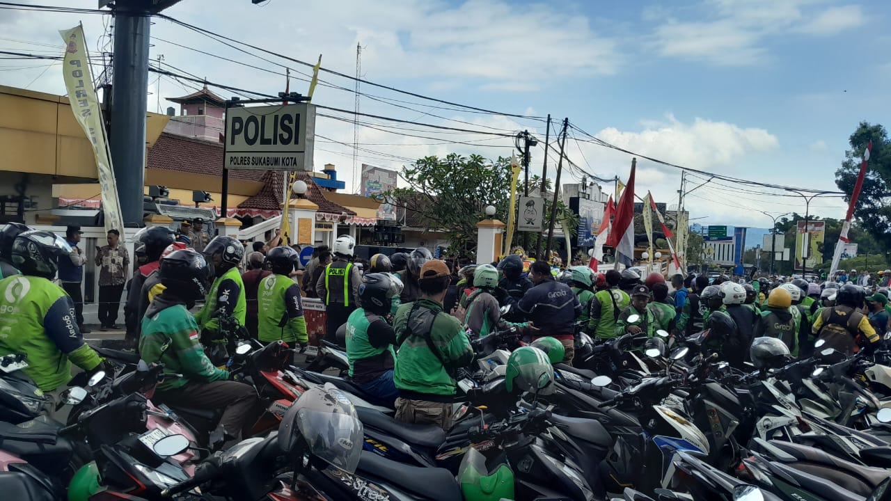 megaswaranews.com, Sukabumi – Ratusan driver ojek online (ojol) di Sukabumi turun ke jalan melakukan aksi damai menuntut Kapolri mundur dari jabatannya, Jumat (29/08/2025). Aksi tersebut digelar sebagai bentuk kekecewaan dan solidaritas atas kasus yang menimpa sesama driver ojol di Cikidang, Umar, yang menjadi korban insiden dengan mobil Brimob.