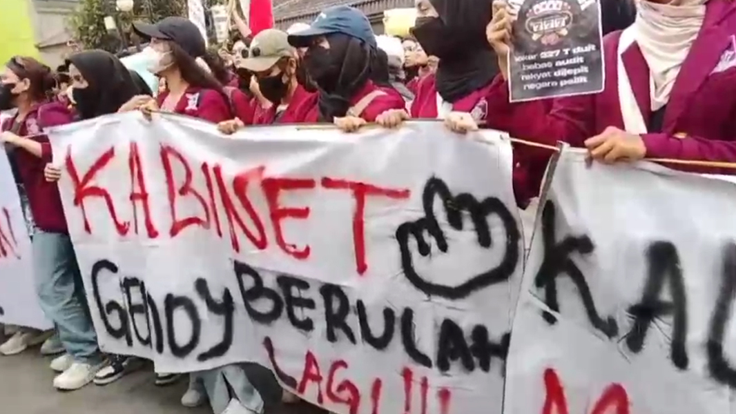 megaswaranews.com, Sukabumi – Ratusan Mahasiswa tergabung dalam Gerakan Mahasiswa menggelar aksi unjuk rasa di depan Gedung DPRD Kota Sukabumi. dengan bertemakan Indonesia Gelap, Dalam aksinya mahasiswa menuntut instruksi presiden tentang efisensi anggaran.
