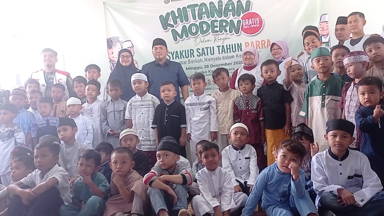 Sebanyak enam puluh peserta anak- anak yang ada di wilayah Bogor utara kabupaten Bogor, tampak antusias mengikuti khitanan massal gratis modern yang diselenggarakan oleh relawan BARRA.