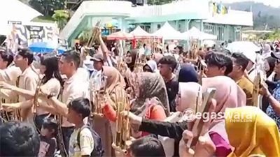 Bupati Sukabumi, Asep Japar, membuka festival pada Minggu (7/12/2025). Saat pembukaan, ribuan pemusik angklung memainkan lagu Indonesia Tanah Air Beta dan membuat pengunjung terpukau.