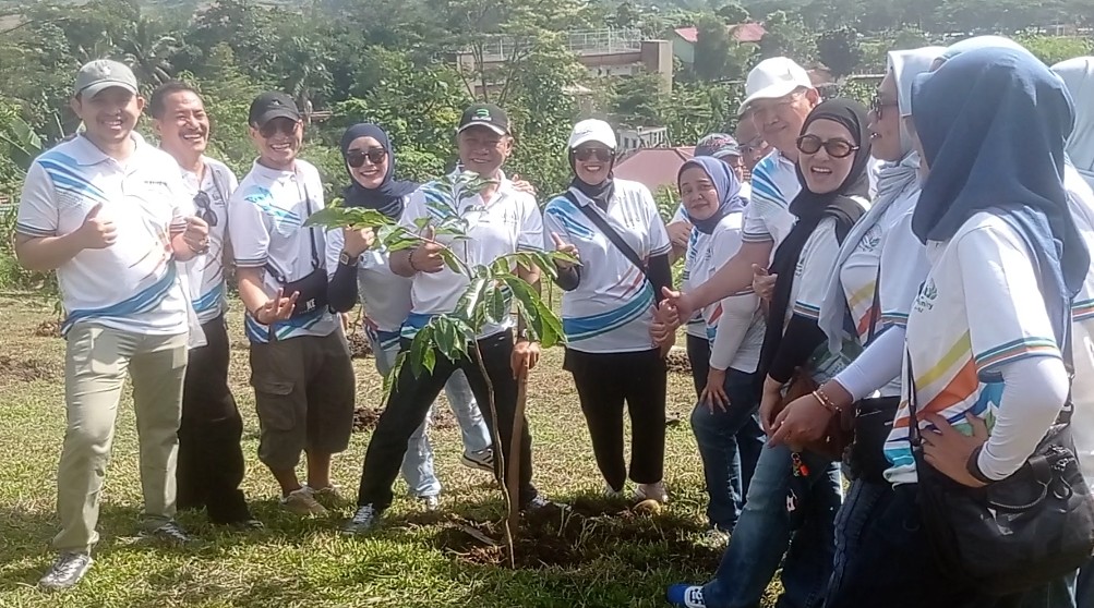 Warga Claster Venesia bersama manajemen PT Sentul City dan Karang Taruna menanam ribuan pohon yang berada di wilayah Desa Sumur Batu, Kecamatan Babakan madang, Minggu ( 05/04/2026).