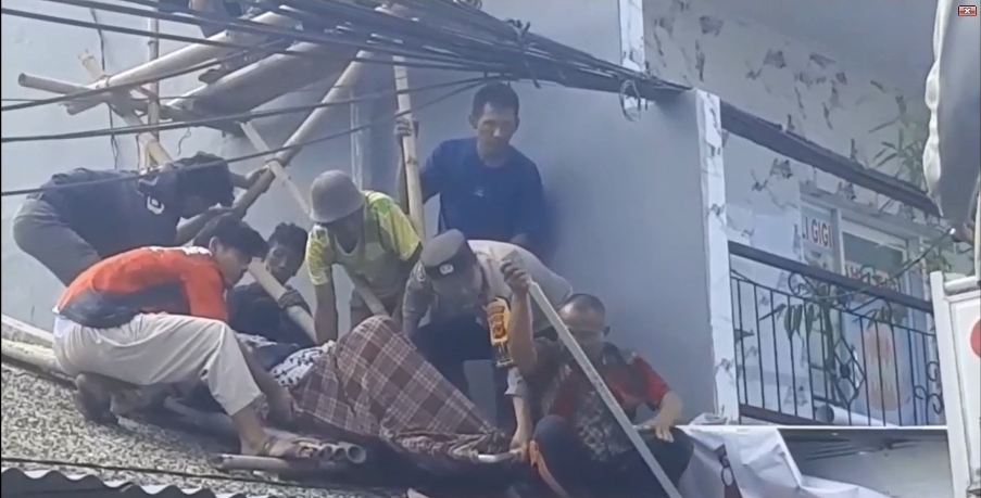 Seorang Pekerja Bangunan Tersengat Listrik, Evakuasi Berlangsung Dramatis