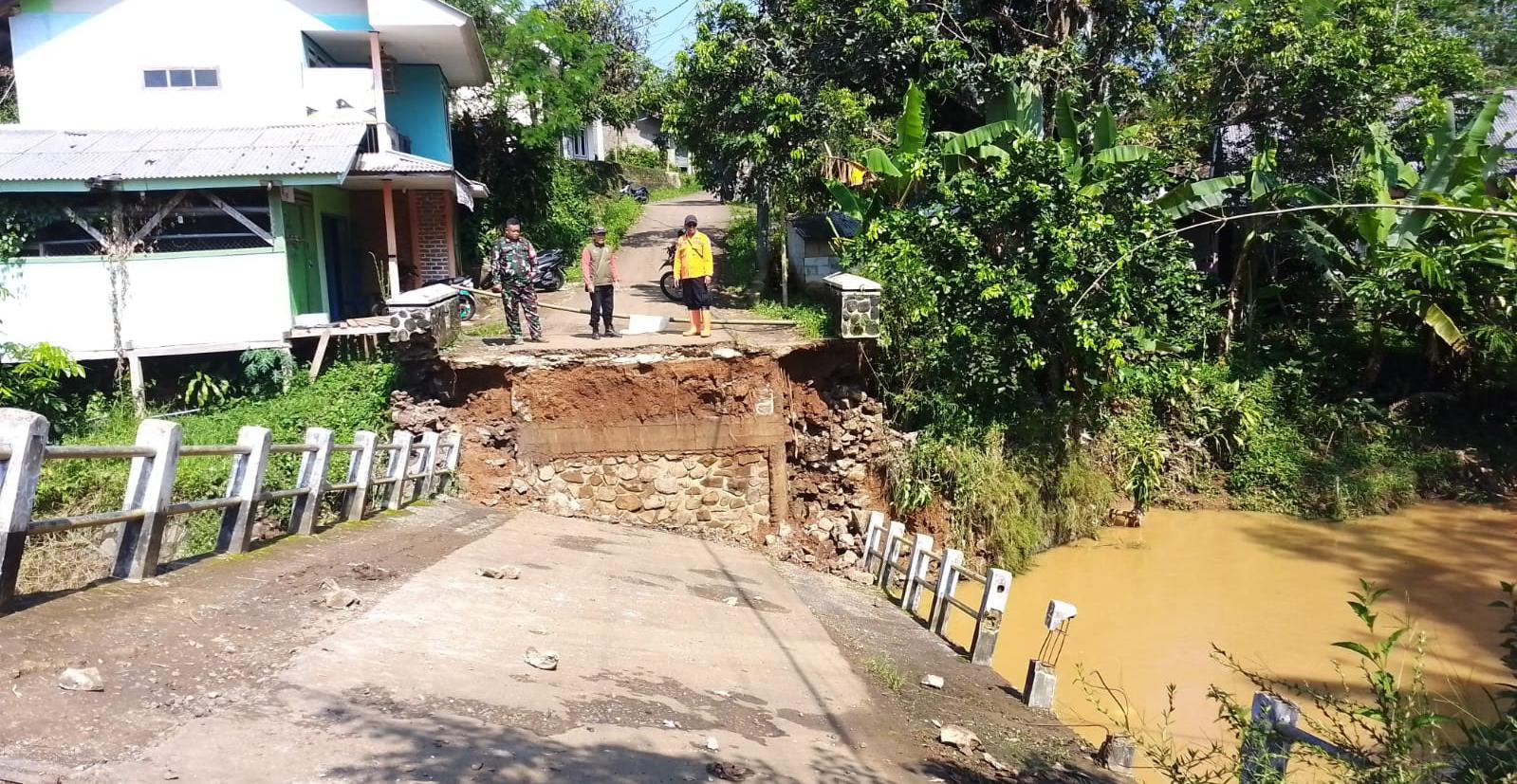 “Untuk kendaraan roda empat harus lewat Bojonglopang dan untuk  pejalan kaki bisa menggunakan jembatan bambu di sebelah hilir jembatan terdampak, “Pungkasnya. (Iqbal Bakar).