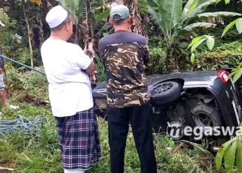 Hendak Liburan, Minibus Wisatawan Gunung Salak Endah Terjun Ke Parit
