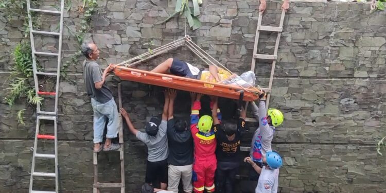 megaswaranews.com, Bogor – Seorang warga bernama Indra (53) mengalami kecelakaan saat memberi makan ayam di belakang garasi mobil miliknya di Jalan Gagalur, Kelurahan Tegal Gundil, Kecamatan Bogor Utara, Jumat siang (19/9/2025). Peristiwa terjadi ketika korban berdiri di atas bentangan baja ringan yang berada di bibir Sungai Ciparigi. Namun, besi tersebut tiba-tiba patah karena tidak kuat menahan beban, sehingga korban terperosok jatuh ke dasar sungai.