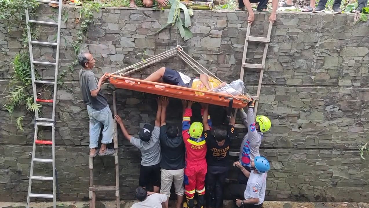 Akibat insiden itu, korban mengalami patah kaki, benjol di kepala, serta bahu terkilir akibat terbentur bebatuan sungai. Sementara petugas Rescue Damkar Kota Bogor dari Pos Sukasari, langsung melakukan evakuasi dengan teknik vertical rescue untuk menarik tubuh korban ke atas tebingan sungai setinggi 7 meter. “Korban bernama Bapak Indra, 52 tahun, sedang memberi makan ayam lalu terperosok ke Sungai Ciparigi dengan kedalaman kurang lebih 7 meter. Evakuasi kita lakukan menggunakan alat vertical rescue. Korban mengalami benturan di kepala dan bahu terkilir,” kata Yudo, petugas Rescue Damkar Kota Bogor.