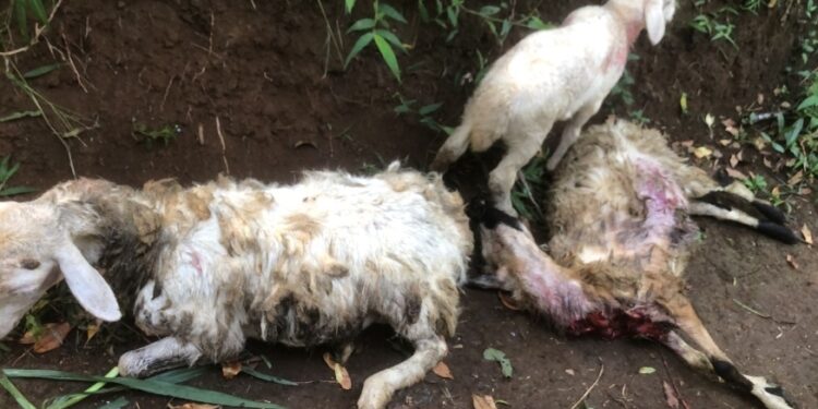 megaswaranews.com, Sukabumi – Warga Kampung Ciherang, Desa Gunungmalang, Kecamatan Cikidang, Kabupaten Sukabumi digegerkan peristiwa kematian puluhan kambing secara misterius. Diduga kuat, hewan ternak tersebut tewas diterkam oleh macan.
